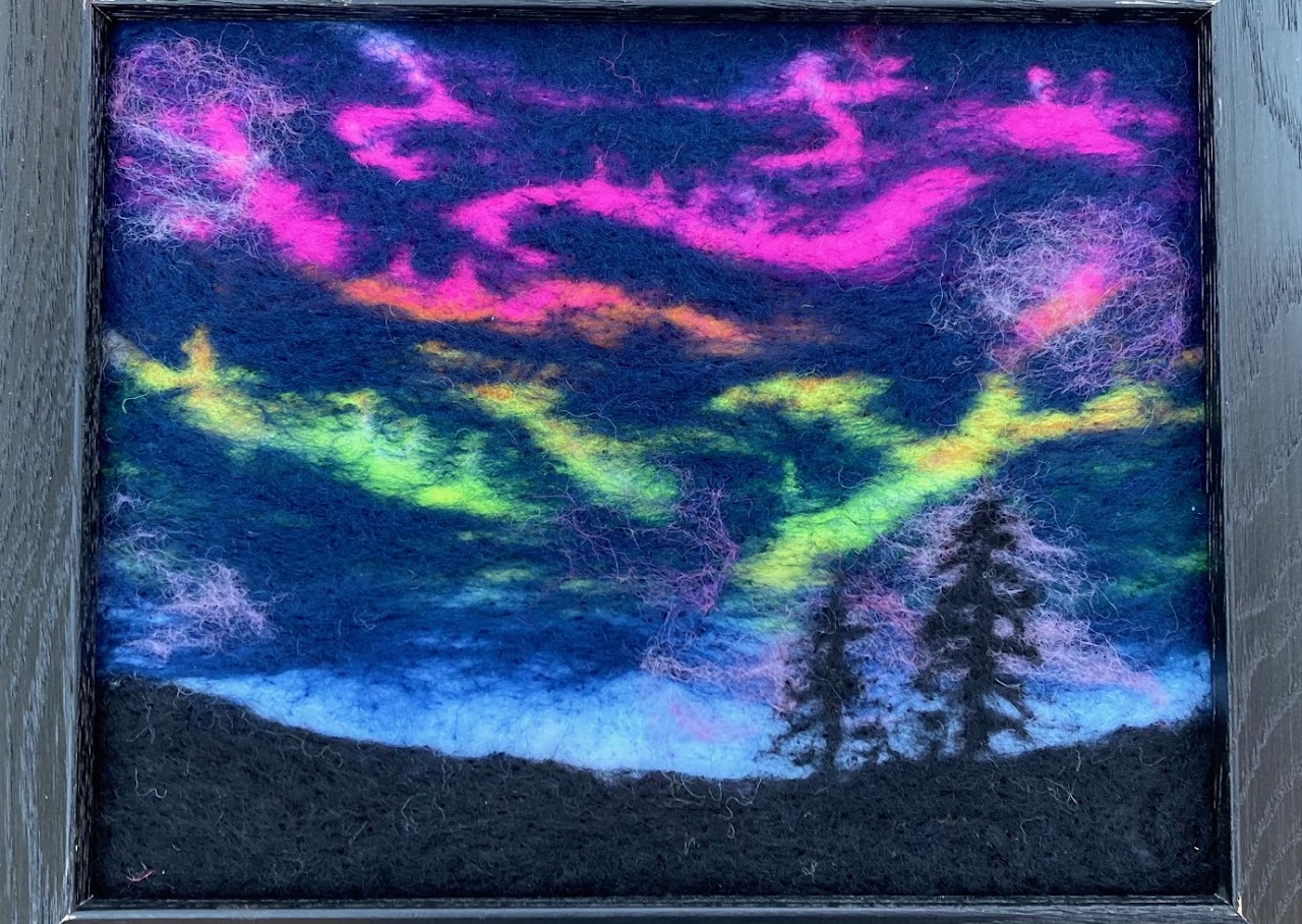 Have you ever dreamed of seeing the splendor of the Aurora Borealis in person? This is the next best thing to a Scandinavian vacation! Join Jennifer Costa for this exciting exploration of needle-felting techniques. The class will cover the basics of landscape needle felting as well as more advanced concepts as we create “layers” of sky and uncover the Aurora Borealis (Northern Lights).