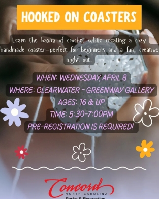 Learn the basics of crochet while creating your very own cozy coaster. This beginner-friendly class will guide you step-by-step as you stitch a simple and stylish coaster perfect for your coffee table or as a handmade gift. All materials provided—just bring your creativity! For more information, please visit www.clearwaterartists.com/events. |