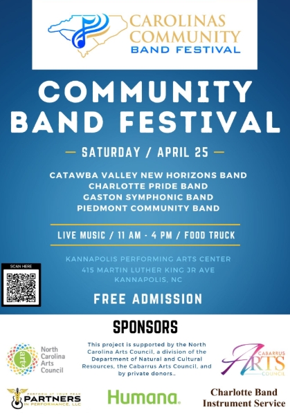Piedmont Community Band will host the second annual Carolinas Community Band Festival at the Kannapolis Performing Arts Center on April 25, 2026. We welcome back guests Catawba New Horizons Band, Charlotte Pride Band, Lake Norman Brass, and the Horn Society of the Carolinas, AND we will feature a new guest - Gaston Symphonic Band! We […]